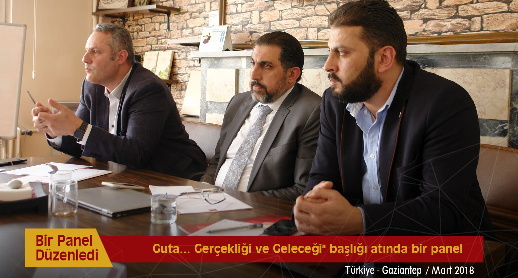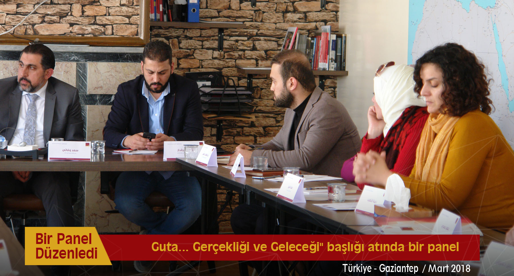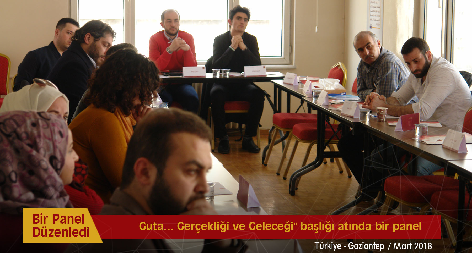 Jusoor Araştırma Merkezi, 5 Mart 2018 Pazartesi günü Gaziantep'teki ofisinde "Guta Gerçekliği ve Geleceği" başlığı atında bir panel düzenledi. Panele İslam Ordusu Genel İlişkiler Sorumlusu Muhammed Bayraktar, Suriye İçin Çalışmalar Grubu Başkanı Bassam el-Kuvvetli, Şam kırsalındaki meclislerin temsilcileri ve bazı sivil toplum kuruluşlarından aktivister ve gazeteciler konuk edildi.