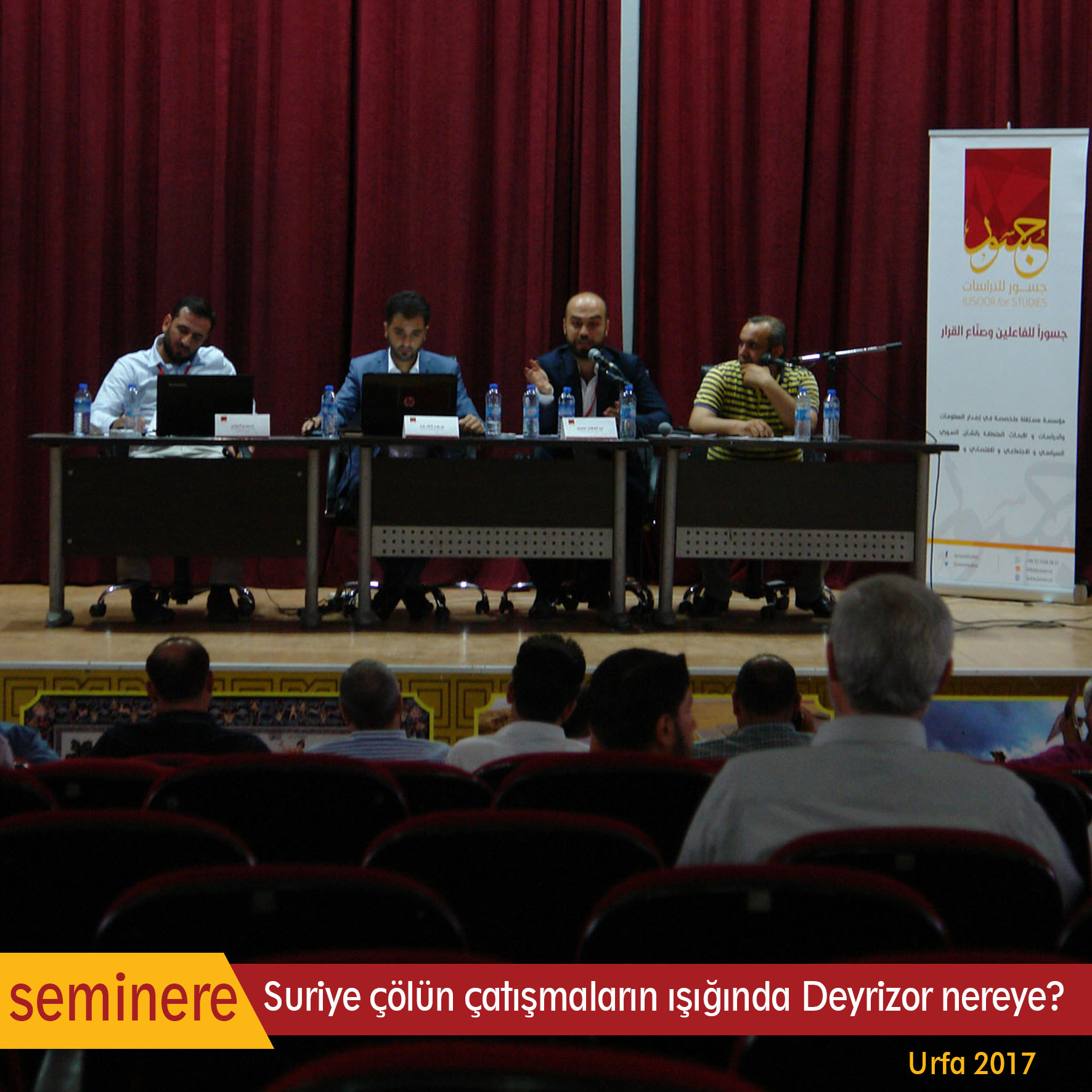 Jusoor Araştırma Merkezi Cumartesi günü 01. Temmuz.2017 terinde Urfa şehrinde "Suriye çölün çatışmaların ışığında Deyrizor nereye ?" adında bir diyalog semineri düzenledi, seminere ülkenin doğu bölgesinin geleceği ile ilgili belirli bazı yerel aktörler katıldılar, seminerde Jusoor Araştırma Merkezini temsil eden "Abdul Vahap Asi", Politika için El Şark Merkezini temsil eden "Saad El Şaare" ve ekonomik ilişkiler ve cihatçı gruplarda uzman araştırmacı olan "Muhsin El- Ravi" konuşma yaptılar.