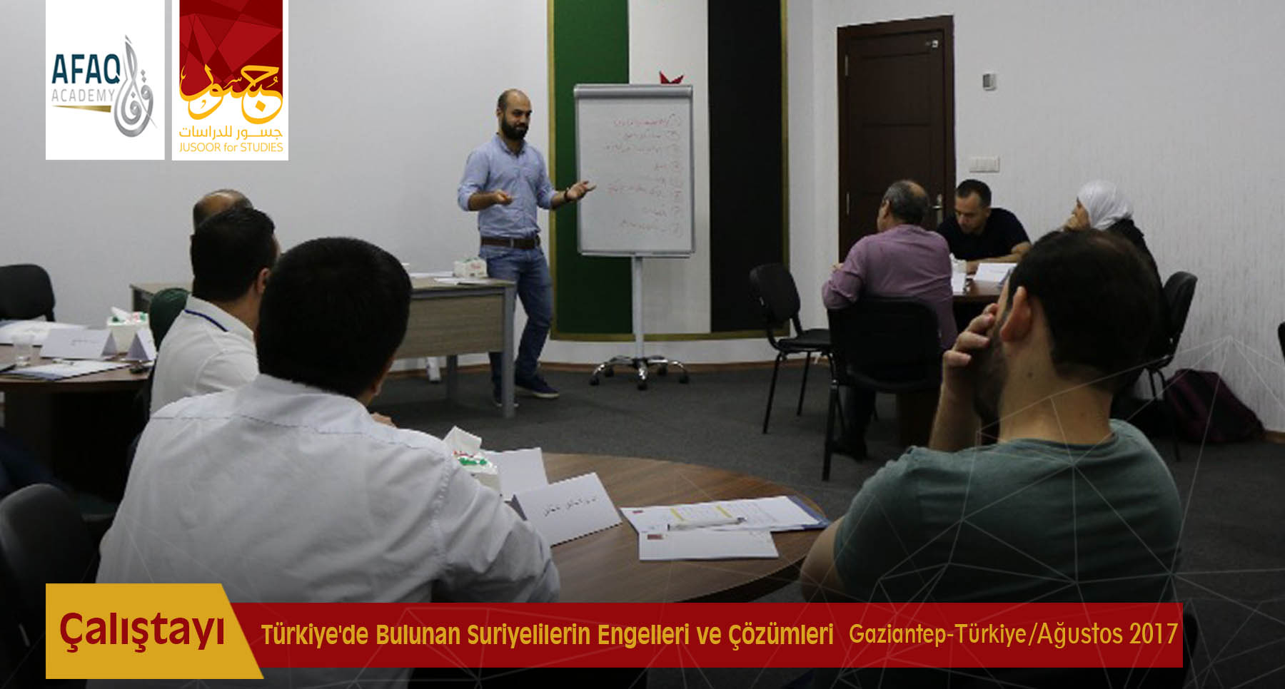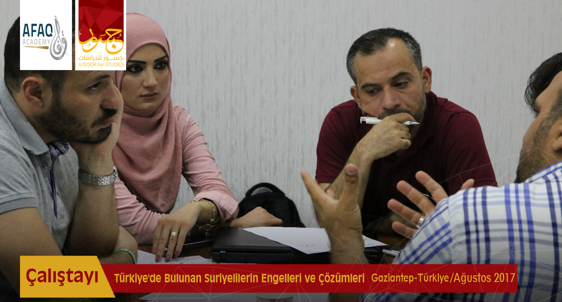 Jusoor Araştırma Merkezi Afaak Akademisyeni 24-25/Ağustos/2017/ tarihinde “Türkiye’de Bulunan Suriyeliler: Problemler ve Çözümler” başlığı atında bir çalıştay düzenledi.